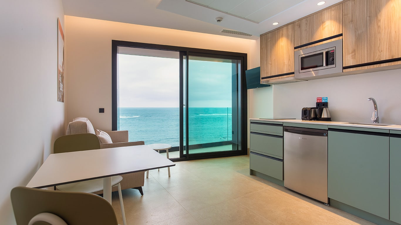 ¿Has visto la puesta de sol en la playa de Las Canteras? Lo mejor de nuestros estudios son las impresionantes vistas al mar, en primerísima línea ante la Playa de Las Canteras.